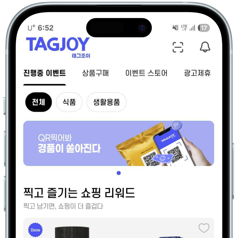 제품 구매 후 QR 코드 스캔 후 상세 제품 및 경품 정보와 응모 이벤트 참여할 수 있어요.